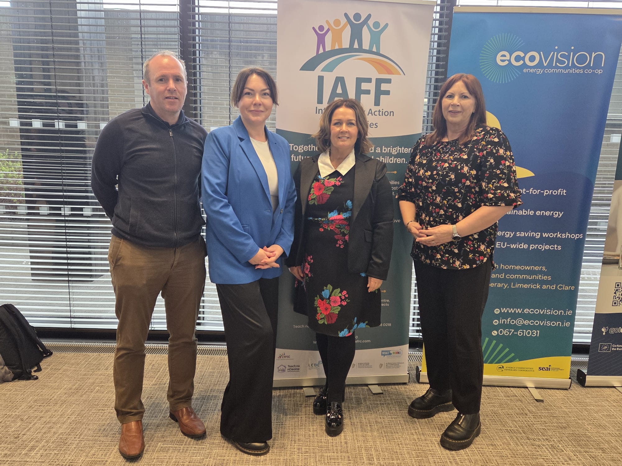 In Tipperary, the pilot, ‘Engage in Energy,’ brings a focus to energy efficiency as a route to improving living conditions and reducing child poverty. The presentation began with input from Stephanie O’Callaghan, Tipperary CYPSC Coordinator, and Eoin Karr, the Tipperary County Council Healthy Ireland Coordinator. They presented on the context and rationale behind the pilot, and walked the audience through their planning phase. Next, two representatives from the primary project partner, EcoVision, presented in more detail on the supports and interventions provided: Máirtín Ó’Méalóid, the Managing Director, and Mona Zirngibl, the Projects and Development Coordinator. In 2025, 40 household energy audits had been completed in each of the three small areas covered by the pilot: Tipperary Town, Roscrea and Carrick-On-Suir. Early interventions, such as the provision of energy‑saving equipment, showed immediate benefits for many of the audited families. An interim report by researchers in the Technological University of the Shannon analysed data from the first 24 audited households, and found that the pilot successfully identified the energy inefficiencies and broader vulnerability factors requiring multi‑agency responses.